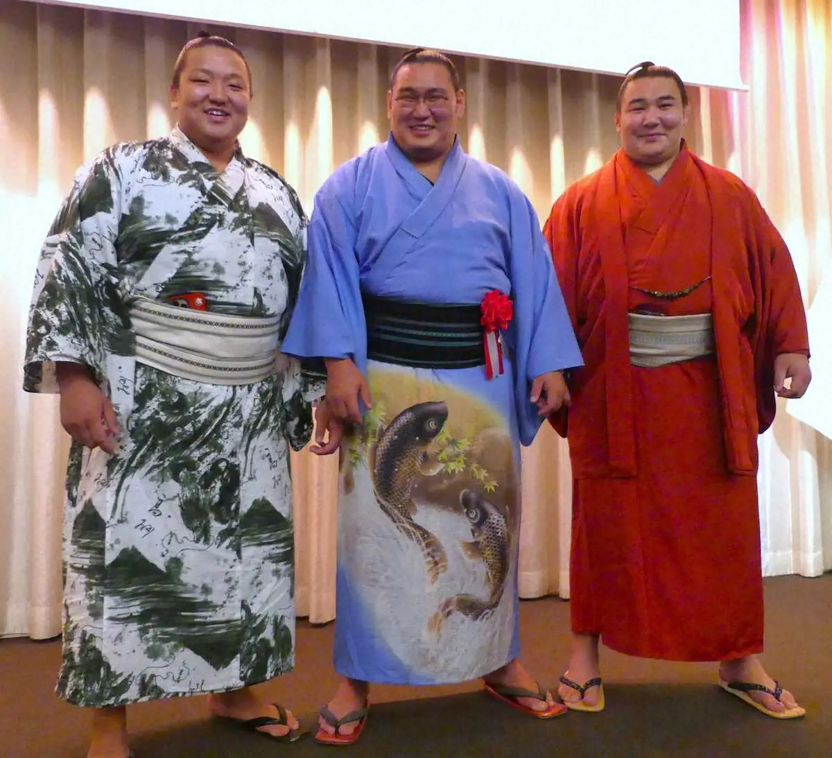 同じ飛行機で来日した十両・欧勝馬(26=鳴戸部屋)と幕下・朝白龍(24=高砂部屋)も同級生として出席。初めて3人が力士として顔をそろえた。「3人で2015年の3月27日に一緒に来た。そう考えると早いね」。8年前の日付まではっきりと記憶しており、感慨深い様子だった。番付で先を行く新大関は「(自分が)先に上がったので負けないようにやらないと。(2人には)早く上がってきてほしいですね」と幕内での対戦を待ち望んだ。