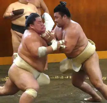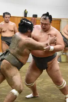 まず幕下の申し合いに参加。出稽古に訪れた北勝丸(23=八角部屋)や大日堂(30=陸奥部屋)らを相手に11番連続で取って全勝。その後は関取衆の申し合いにも参加し、関脇・大栄翔(29=追手風部屋)や幕内・豪ノ山(25=武隈部屋)らの胸を借りた。