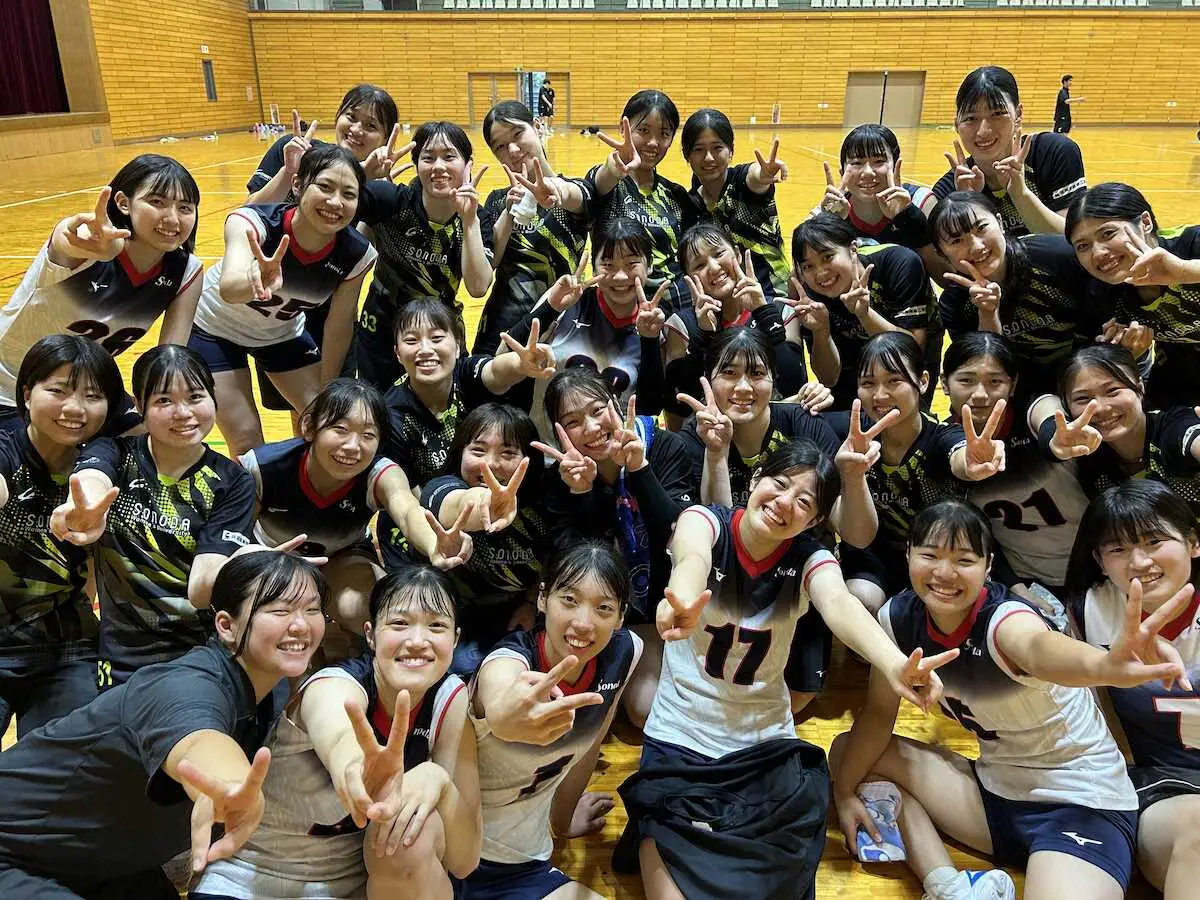 <関西大学バレーボール連盟秋季リーグ>連勝スタートに、笑顔いっぱいの園田学園女子大学のメンバー(写真提供 関西大学バレーボール連盟)