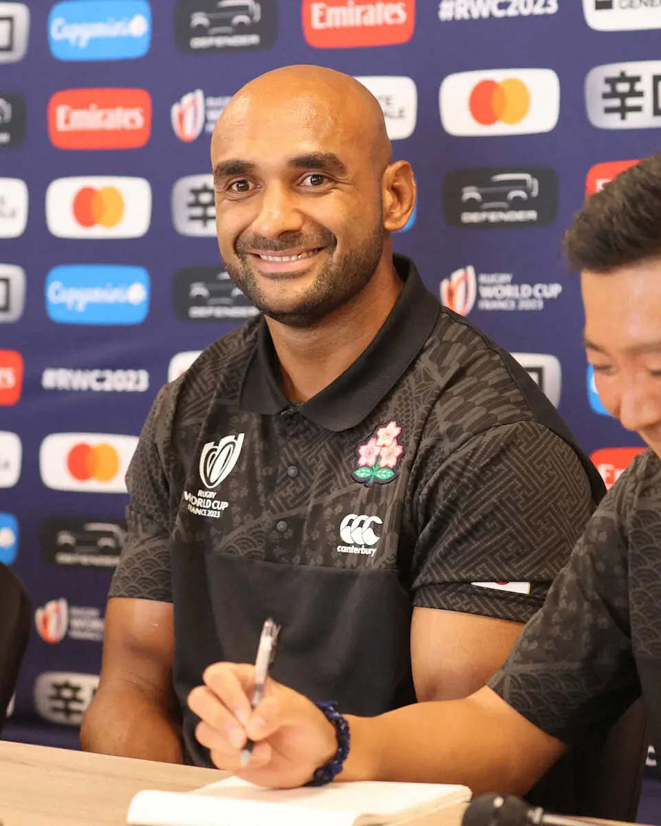 <日本代表会見>「阪神の優勝は喜ばしい」と語る花園所属のマシレワ(撮影・篠原岳夫)