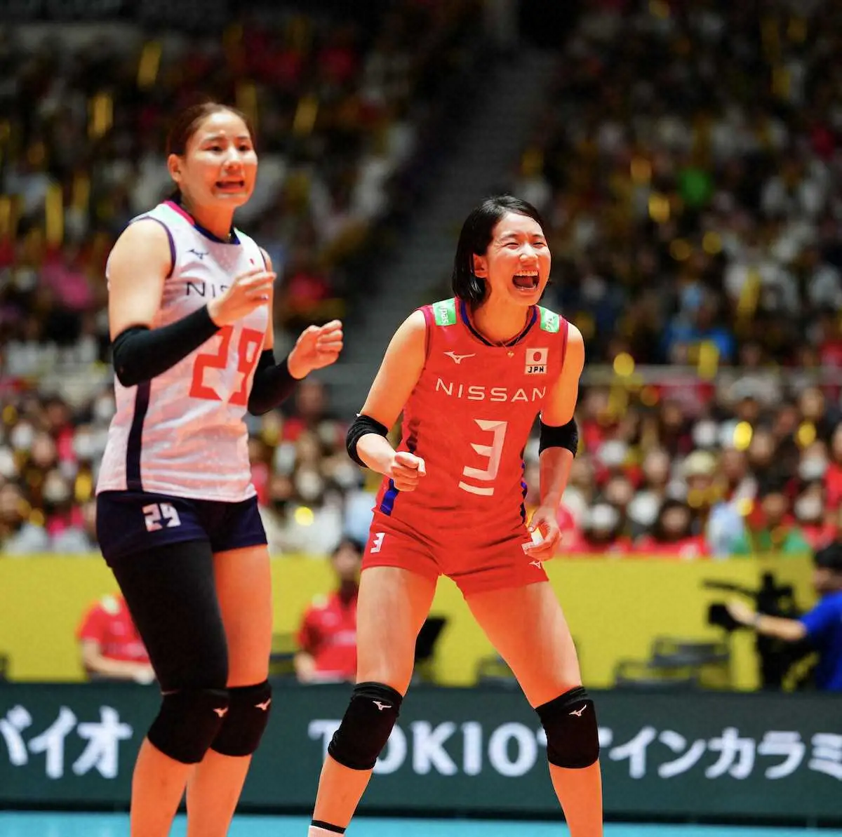 <日本・ペルー>第2セット、得点が決まり喜ぶ古賀(左から2人目)(撮影・小海途 良幹) Photo by スポニチ 【バレー五輪予選】日本女子ペルーに完勝!古賀チーム最多14得点で初陣“主… ギャラリーで見る この記事のフォト 2023年09月16日の画像一覧 もっと見る 2023年09月16日の画像をもっと見る