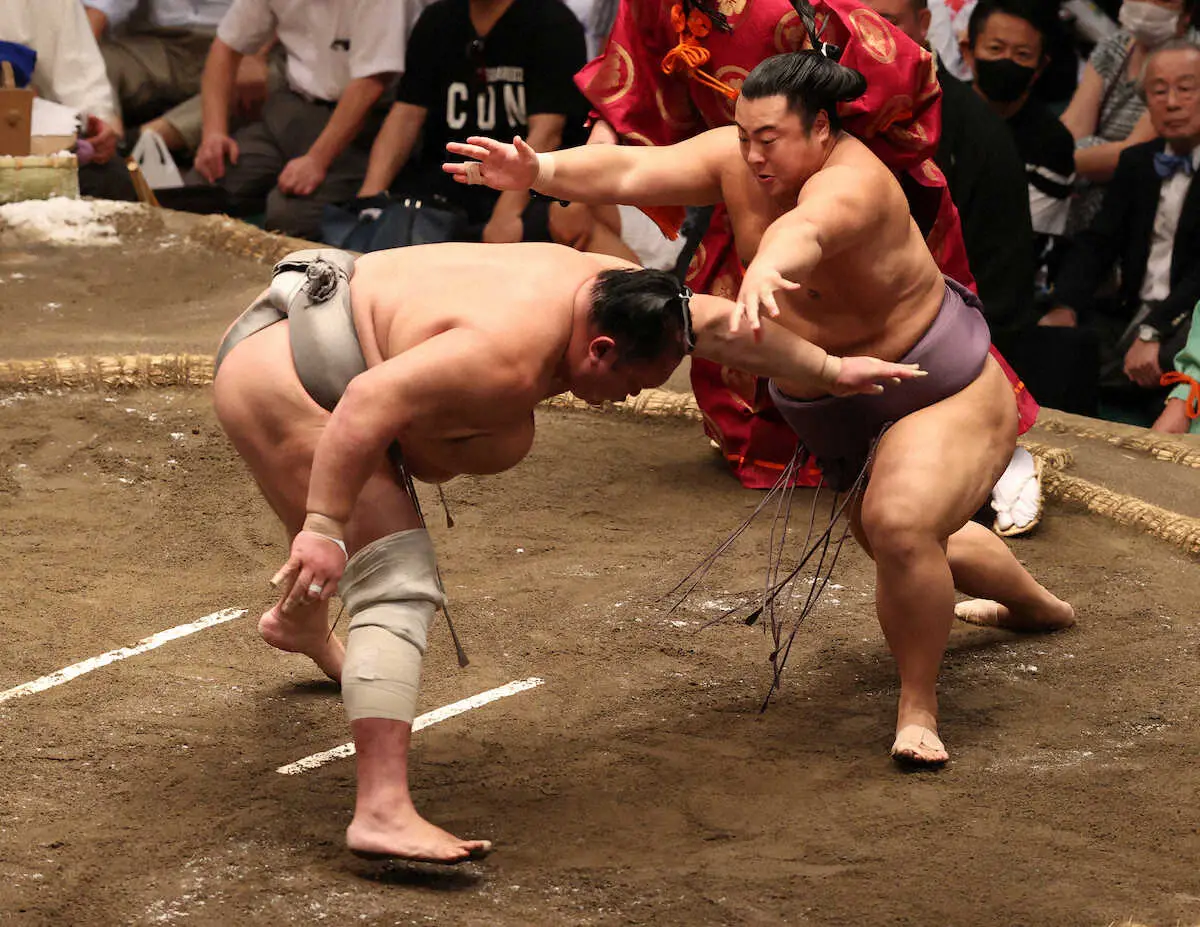 北勝富士 3年半ぶりの三役復帰へ王手 幼なじみの翔猿を押し出して7勝目