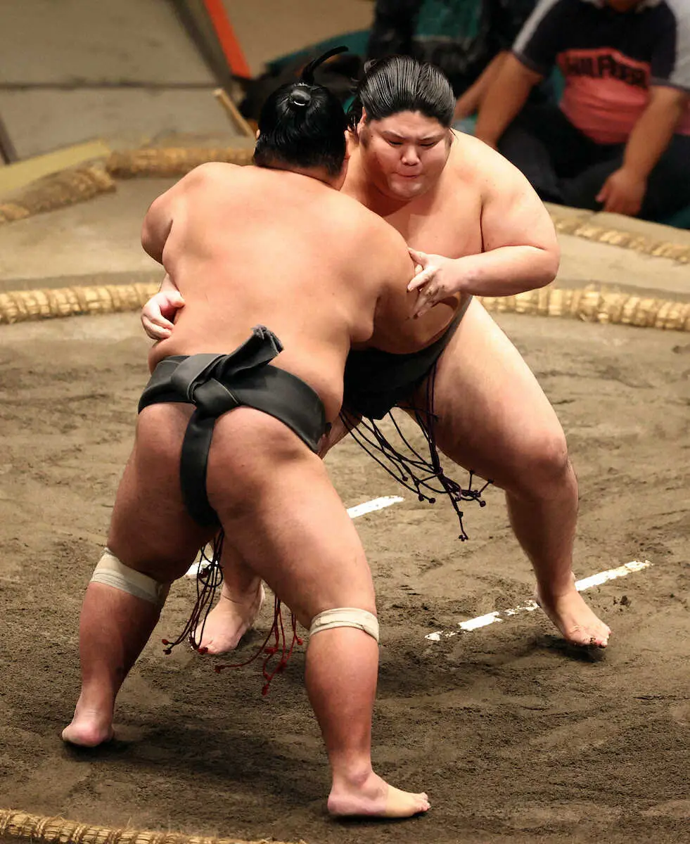 日大のチームメートで同部屋同期の三段目・春山や、幕下の北天海(24)、大海(22)らが現在の稽古相手。「今は技術よりも前に出る練習をしている」という。得意は右四つで「つかまったらヤバいと思われるような」相撲を目指す。当面の目標は「まずは本場所に慣れていきたい」と初々しく話した。