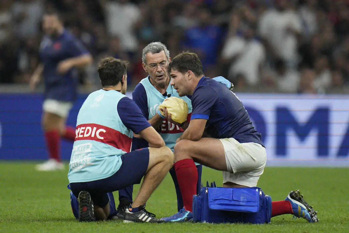 ガルティエ監督はデュポンの状態について、「あごの骨にひびが入ったか、骨折が疑われる。診断結果を待っている」と説明した。フランスは開幕前の8月にも正司令塔のSOロマン・ヌタマックが膝の故障で離脱。デュポンも離脱となれば主戦ハーフ団2人がそっくりいなくなることになり、悲願の初優勝に向けて暗雲が漂うことになる。