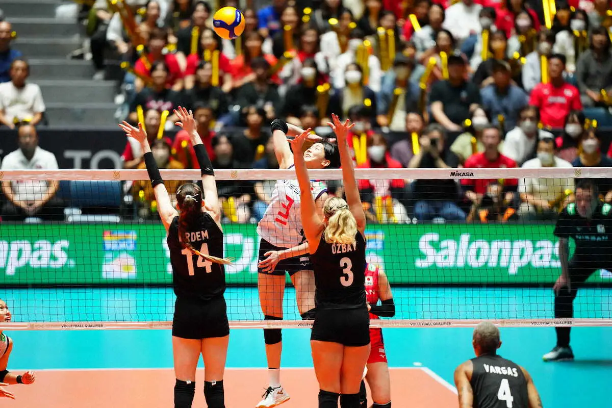 <日本・トルコ>第1セット、得点が決まり喜ぶ日本選手(撮影・小海途 良幹) Photo by スポニチ 【バレー五輪予選】日本女子が今大会初失セットで1―1 トルコと全勝対決 … ギャラリーで見る この記事のフォト 2023年09月23日の画像一覧 もっと見る 2023年09月23日の画像をもっと見る