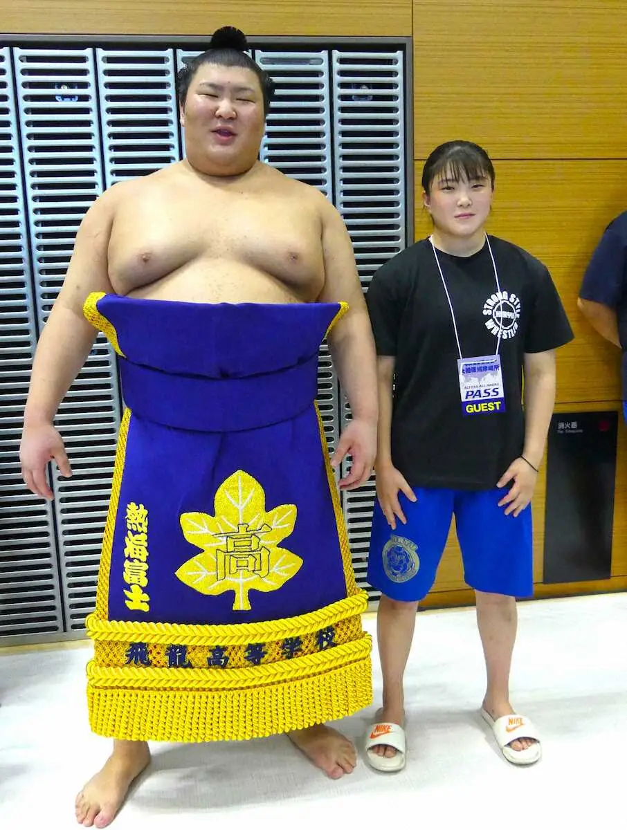 熱海富士と妹の武井陽奈さん(7月30日、沼津巡業で)