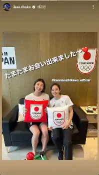 競泳の池江璃花子も「たまたまお会いできました~」と「TEAM JAPAN」のクッションを持って笑顔の写真を投稿し、石川さんも「りかこちゃん会えて嬉しかったです」とつづっている。