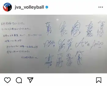 勝った方が五輪出場権となる24日のブラジル戦は、フルセットの死闘の末に2―3で敗れた。この試合の後、日本バレーボール協会は公式インスタグラムを更新。「ロッカールームに選手たちのメッセージが残されていました…!」として1枚の写真を公開した。