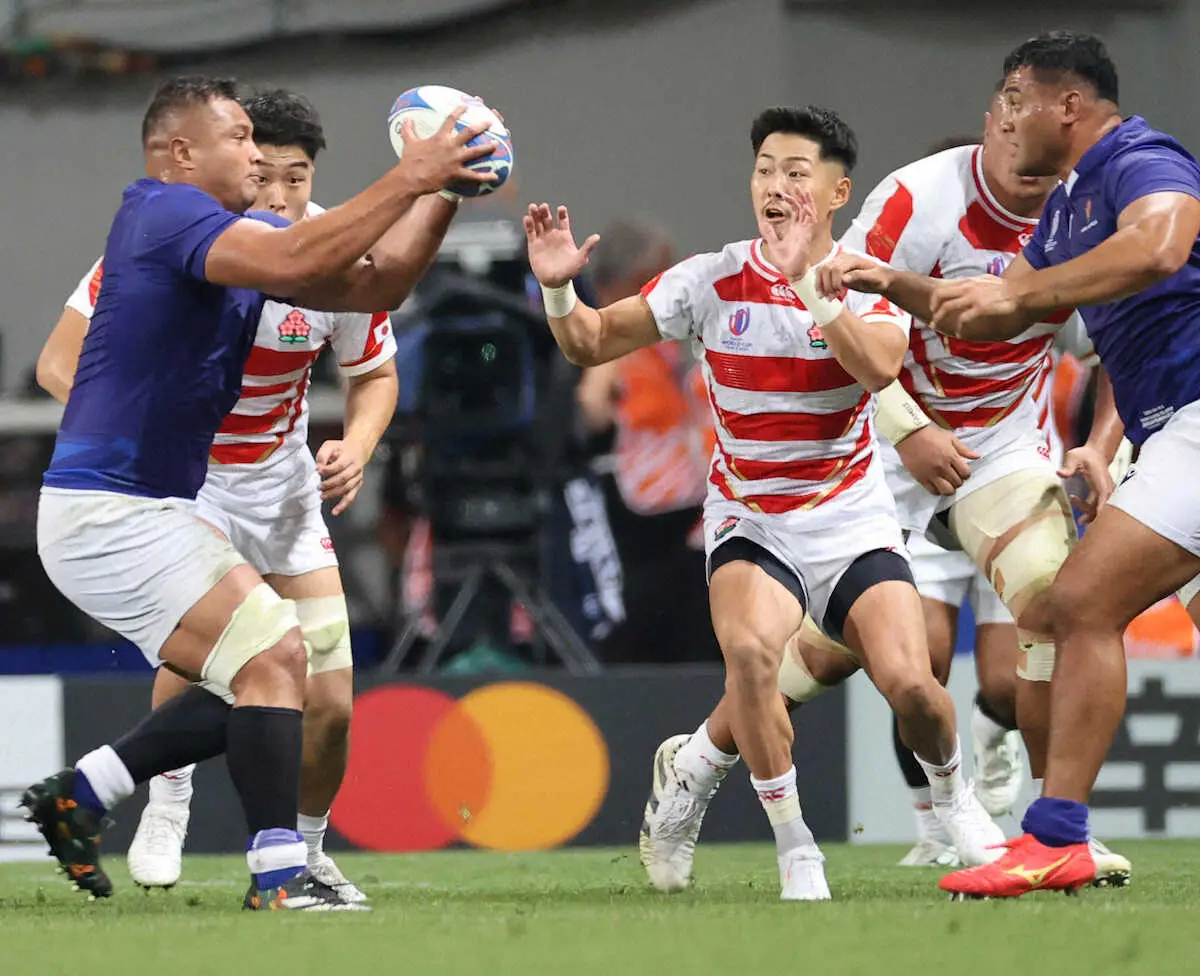 <日本・サモア>試合後に笑顔で場内を一周する斎藤(左)と流(撮影・篠原岳夫) Photo by スポニチ 【ラグビーW杯】文字通り「ONE TEAM」でアクシデントなんのその 流の欠… ギャラリーで見る この記事のフォト 2023年09月29日の画像一覧 もっと見る 2023年09月29日の画像をもっと見る