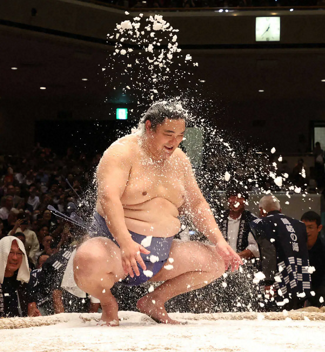 隠岐古典相撲形式で最後の取組に臨んだ君ケ浜親方(元隠岐の海)は土俵の上で大量の塩を浴びる(代表撮影) Photo by 代表撮影 隠岐の海 “大量の塩”舞う引退式 隠岐の島に伝わる「古典相撲」 ギャラリーで見る この記事のフォト 2023年10月01日の画像一覧 もっと見る 2023年10月01日の画像をもっと見る