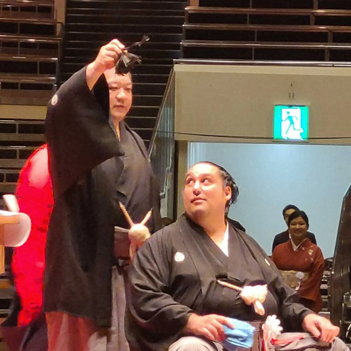 この日はブラジルから母ロザーナさん(61)ら家族も呼んで、最後の大銀杏(おおいちょう)姿を披露。「かいせい~」のかけ声が響く中、憧れの人で現在所属する浅香山部屋の師匠、浅香山親方(元大関・魁皇)の止めばさみで、苦楽をともにしたシンボルを切り落とされた。整髪を終えた元魁聖は「準備が大変で、無事に終わってホッとしています。昔から知っている人がはさみを入れてくれて、いろんな思いがこみ上げてきた」と話した。