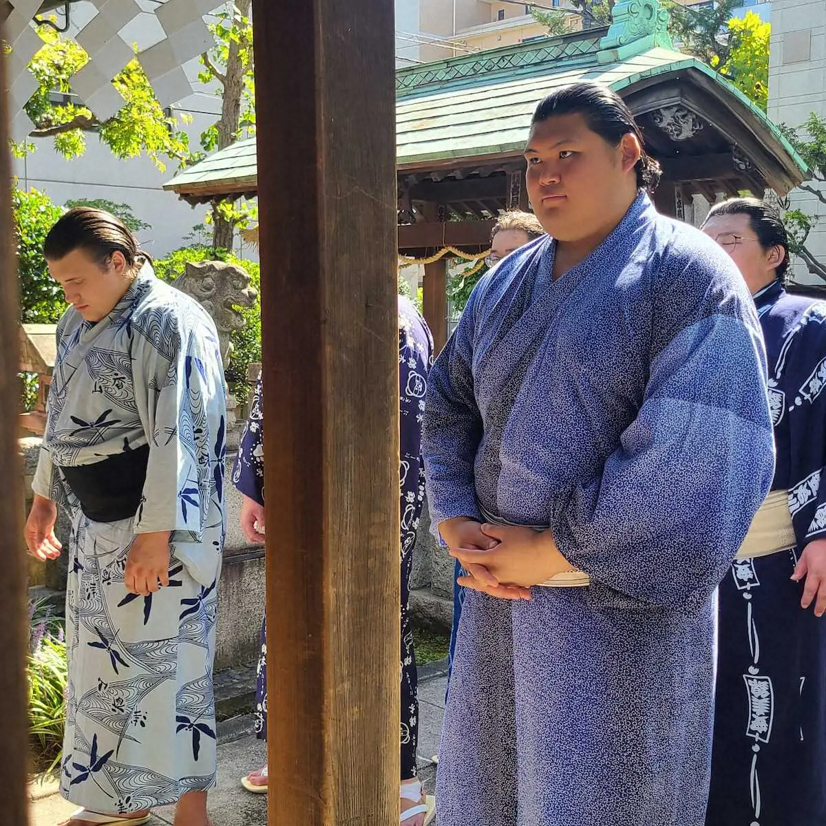 また、ウクライナ出身で初参加となった安青錦(19=安治川部屋)は「神社は3回目くらい。横綱の名前が刻まれている碑もあって面白かった」と感想を述べた。