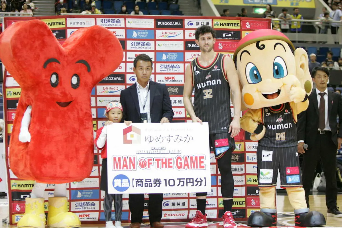 チーム最多の27得点でマン・オブ・ザ・ゲームに選ばれたカロイアロは「すごくタフな試合になったが、第3Qにリードしてそのまま(勝利に)もっていけたのかなと思っている。日本でのプレーは初めて。土日に連続して試合があることは今までになく、疲労を感じながらのプレーする難しさはあるが、Bリーグはいいリーグだと思う」と、すでに日本びいきに傾いている一面をのぞかせていた。