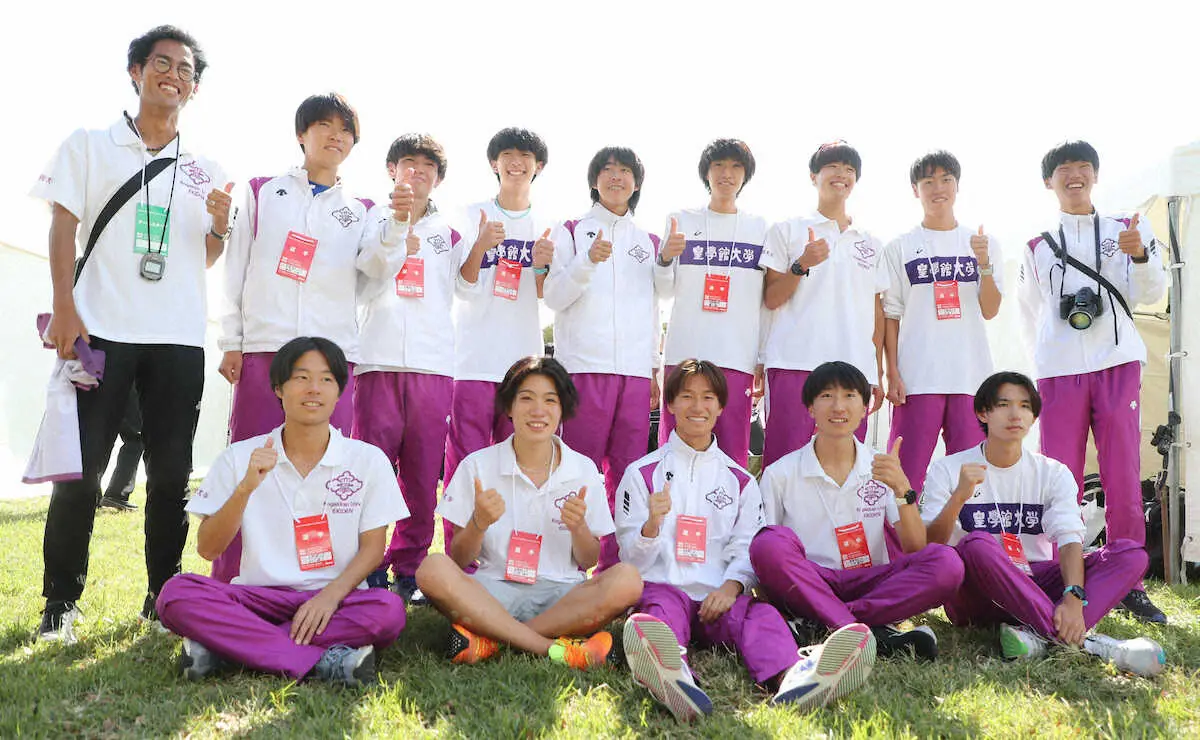 <箱根駅伝予選会>記念撮影をする皇学館大の選手と寺田監督(後列左)=撮影・大城 有生希