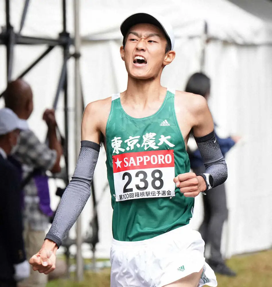 中学時代はサッカー部も、報徳学園で本格的に陸上を始めた。1万メートルで28分3秒51の自己ベストを持つスーパールーキーは「農大が通過できるよう、自分が1秒でも稼ごうと思っていた」と振り返った。