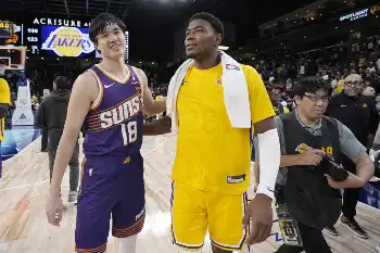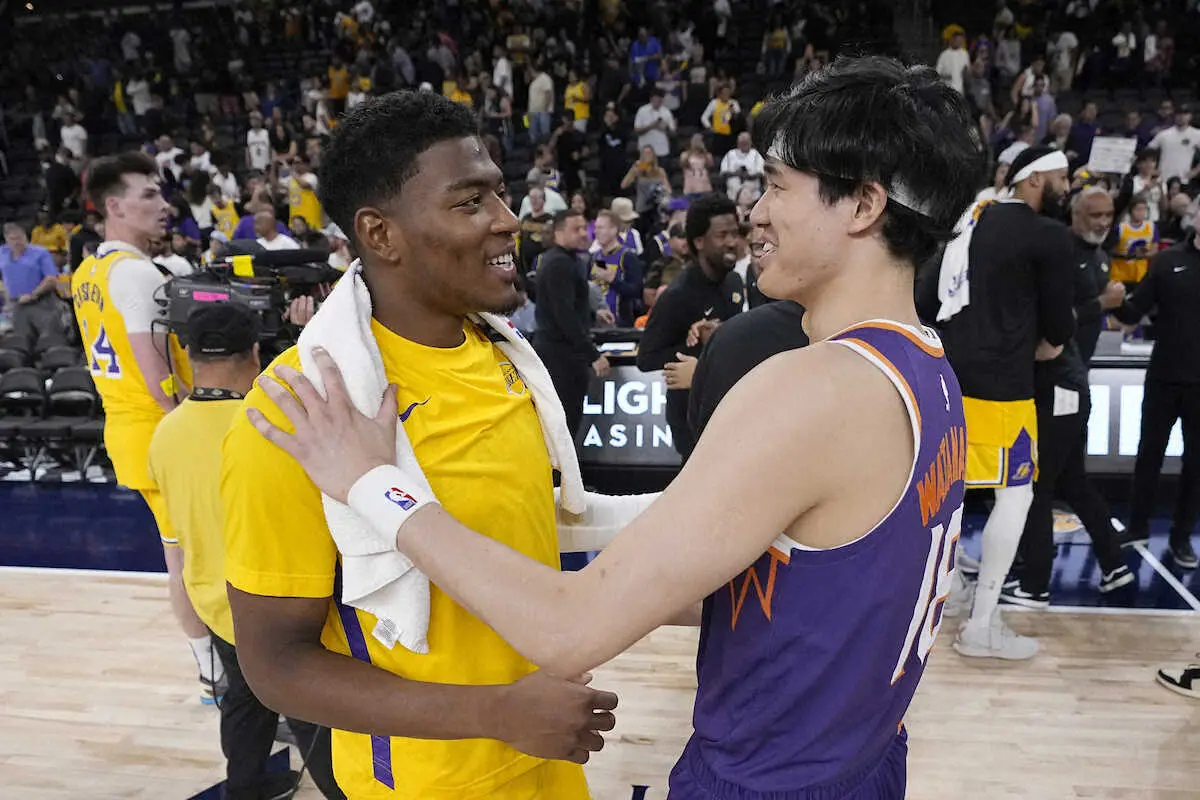 サンズの渡辺雄太(29)とレイカーズの八村塁(25)が現地時間19日(日本時間20日)にプレシーズンマッチ対戦。渡辺は途中出場で12得点の活躍を見せた。対して八村は途中出場で3得点に止まった。試合は123―100でサンズが勝利した。2人が同時にコートに立つのは今年1月30日(日本時間31日)のネッツVSレイカーズ(ブルックリン)以来となった。