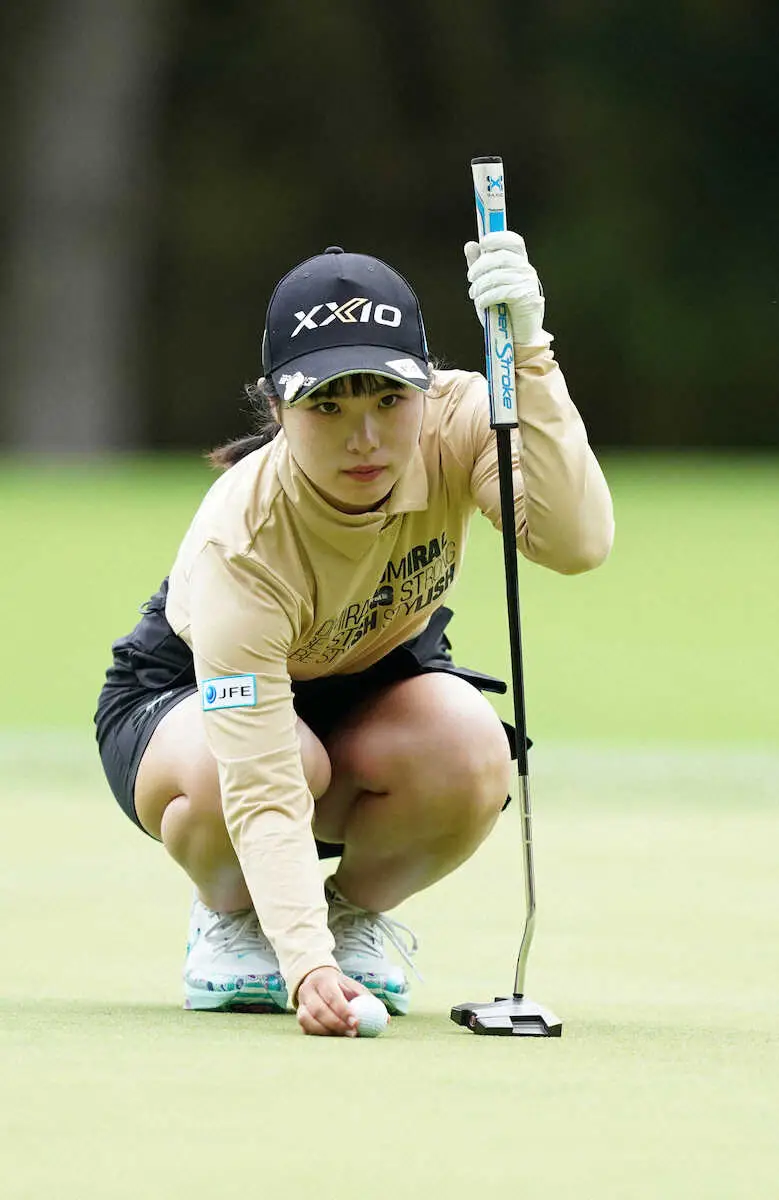 尾関彩美悠(あみゆ、20=JFEスチール)はグリーン周りで粘りを見せ、首位に浮上した。前半はイーブンで折り返すと後半に入ってスイッチが入った。10、11番ではいずれも3メートルを沈め、連続バーディー。15番でも3メートルを沈め、スコアを伸ばす。最終18番では2打目をグリーン右に大きく外すピンチも残り30ヤードをロブショットで1メートルに寄せてパーセーブした。