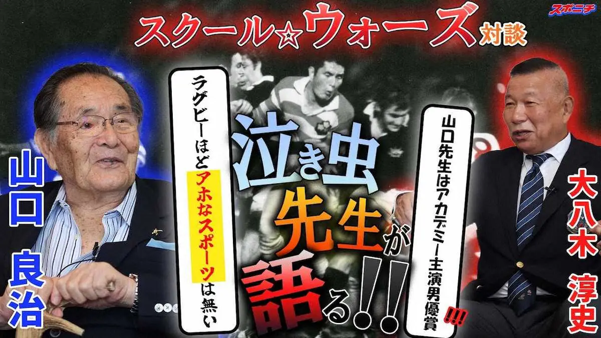 元ラグビー日本代表の大八木淳史氏(62)がゲストを招いてトークする「レジェンド対談」がスタートします。第一弾は大八木氏の恩師で、日本代表フランカーとしても活躍した元伏見工業高校監督の山口良治氏(80)です。あの伝説のテレビドラマ「スクール☆ウォーズ」の主人公、滝沢賢治のモデルにもなった“泣き虫先生”が、教え子の“暴れん坊”と語り合った。
