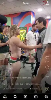 【ラグビーW杯】SHデクラークが歓喜のビキニ姿披露 テニス界のレジェンドともハグ 南アがNZ破り連覇