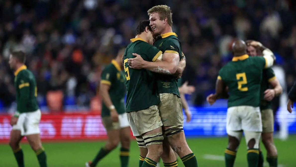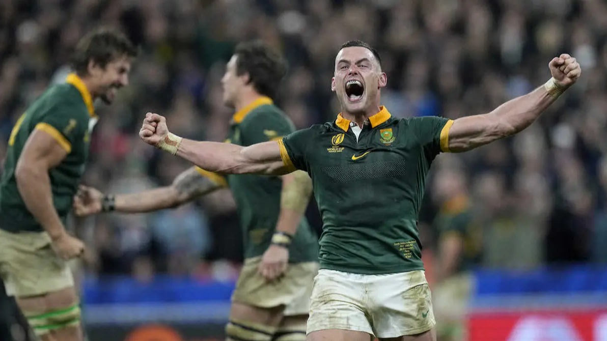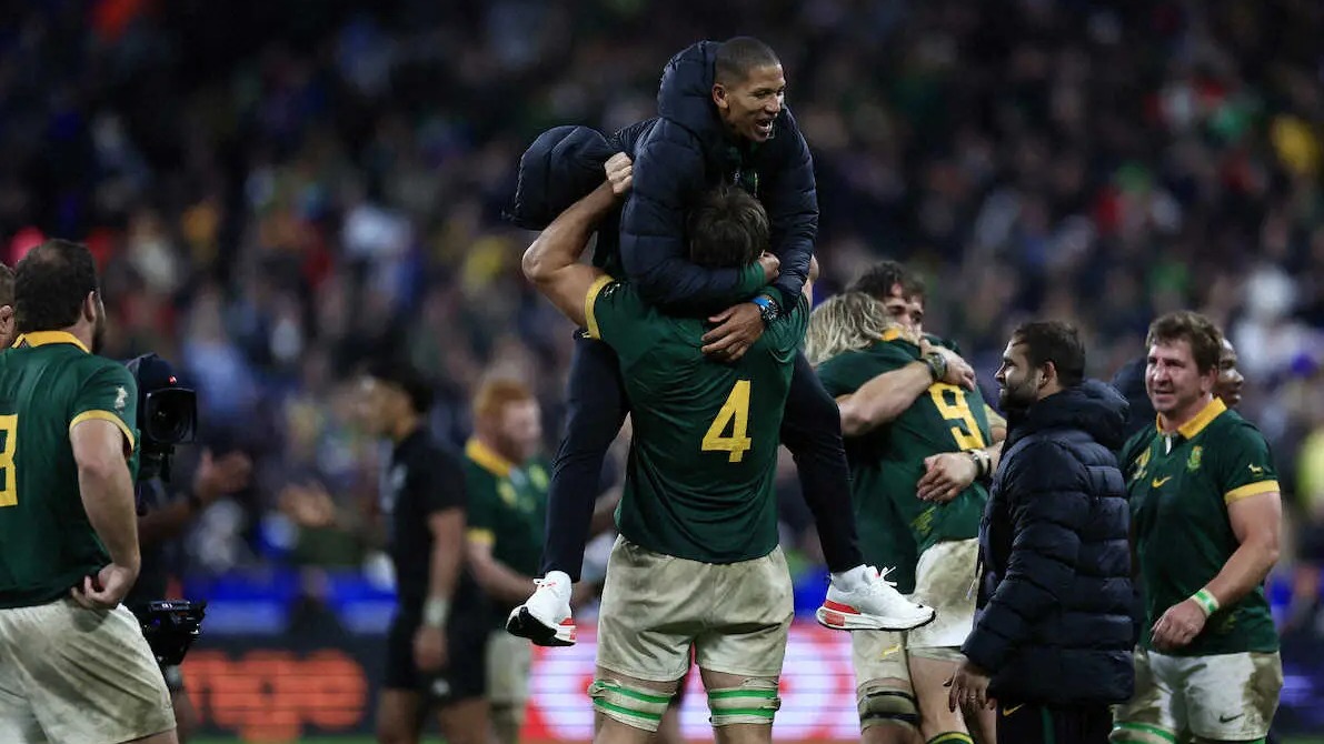 <ニュージーランド・南アフリカ>連覇を達成し、優勝トロフィーを掲げるシヤ・コリシ主将(中央)と喜びを爆発させる南アフリカの選手たち(AP) Photo by AP 【ラグビーW杯】南アが連覇達成 3戦連続1点差で宿敵NZを下し涙の頂点 単… ギャラリーで見る この記事のフォト 2023年10月29日の画像一覧 もっと見る 2023年10月29日の画像をもっと見る
