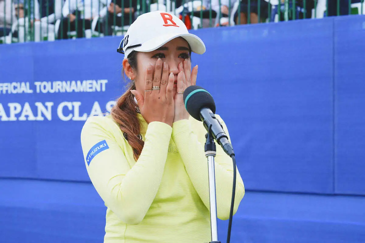 優勝トロフィーを手に笑顔を見せる稲見萌寧(撮影・会津 智海) Photo by スポニチ 【TOTOジャパンC】稲見萌寧 大会新22アンダーで米ツアー初V 約1年3カ月… ギャラリーで見る この記事のフォト 2023年11月06日の画像一覧 もっと見る 2023年11月06日の画像をもっと見る