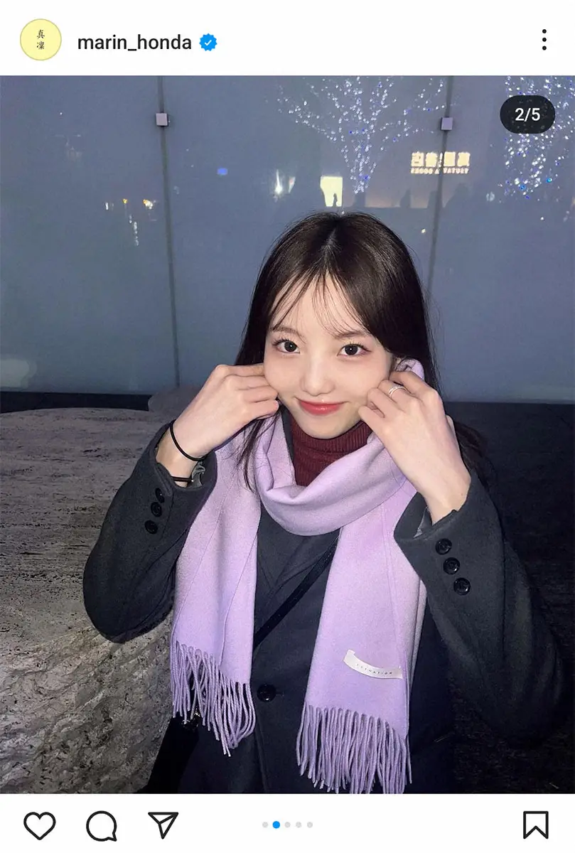 ファンからは「まさに天使」「ほんとに可愛すぎる」「美人が別格やね」「髪の毛が短くなってる」「紫のマフラーがお似合いです」などの声が寄せられていた。