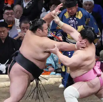成績次第で横綱昇進の可能性がある大関・貴景勝(27=常盤山部屋)は宇良(31=木瀬部屋)を下し無傷の3連勝。関脇・大栄翔(30=追手風部屋)との年間最多勝争いを2差で追う霧島(27=陸奥部屋)は正代(32=時津風部屋)に寄り切りで勝利、豊昇龍(24=立浪部屋)も北勝富士(31=八角部屋)をはたき込みで下し、3大関そろって開幕3連勝となった。