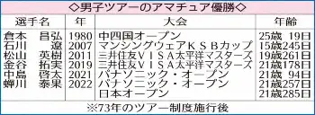男子ツアーのアマチュア優勝 Photo by スポニチ 22歳アマ杉浦が単独首位 1Wで攻めた「ビビらずいきたい」松山、ケプカ、… ギャラリーで見る この記事のフォト 2023年11月18日の画像一覧 もっと見る 2023年11月18日の画像をもっと見る