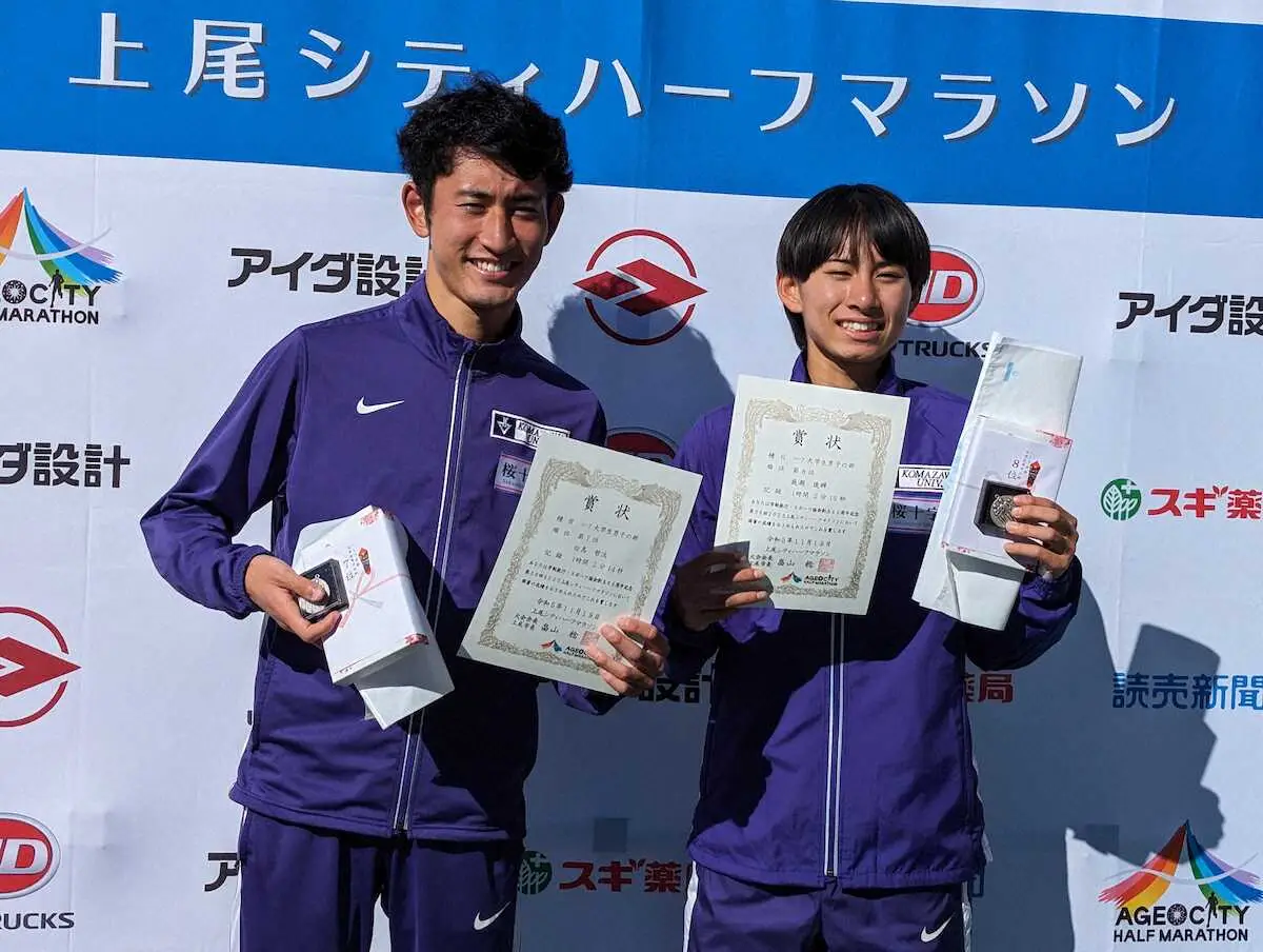 箱根駅伝を目指すランナーの集う大学生男子の部で、史上初の2季連続3冠の懸かる駒大勢は白鳥哲汰(4年)が1時間2分14秒で日本人5番となる7位入賞。庭瀬俊輝(3年)が終盤のスパートで白鳥と1秒差の1時間2分15秒で8位入賞だった。