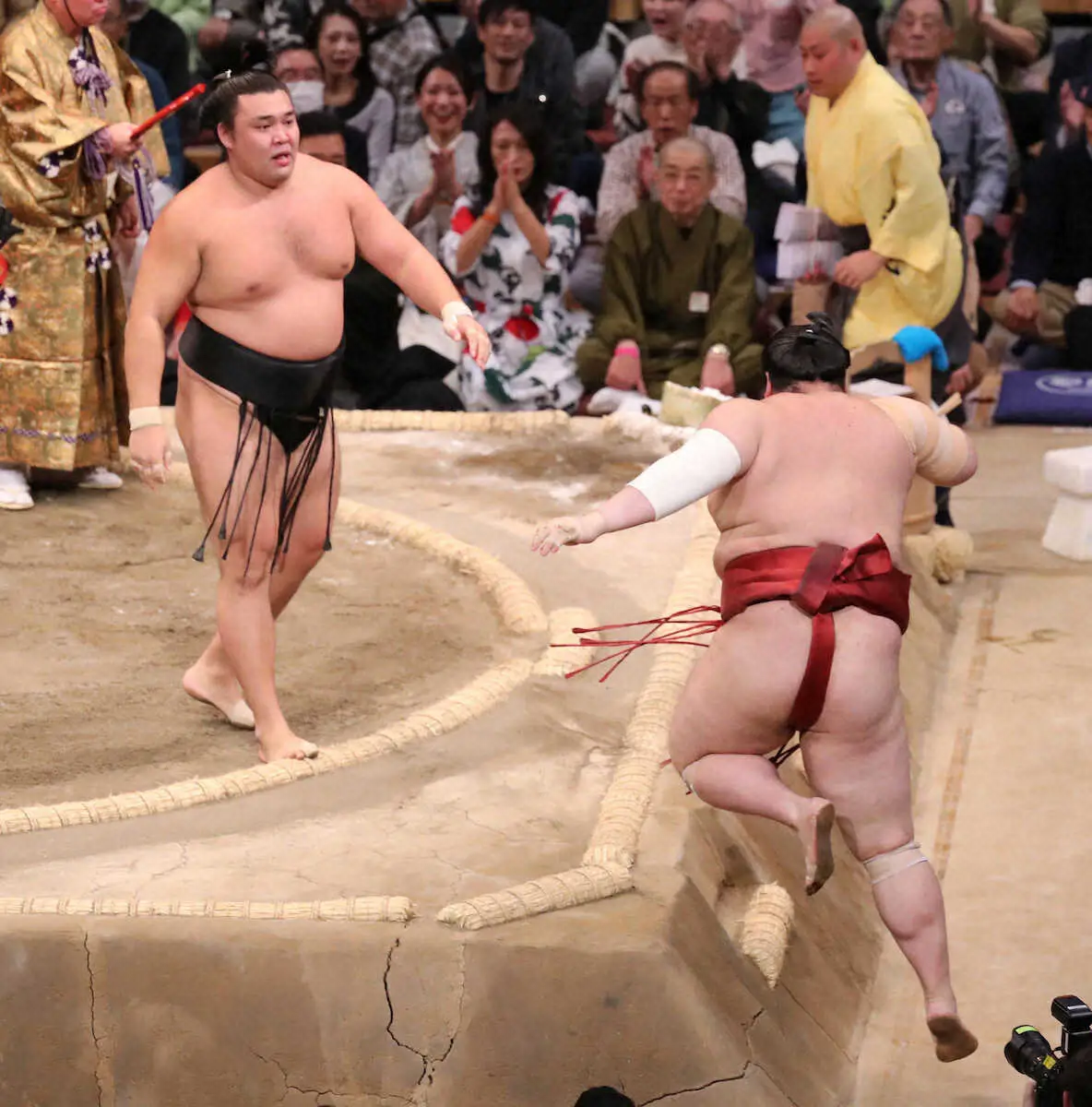 霧島は勝てば優勝。熱海富士が負けた場合は、霧島の勝敗にかかわらずその時点で霧島の4場所ぶり2度目、大関としては初めての優勝が決まる。