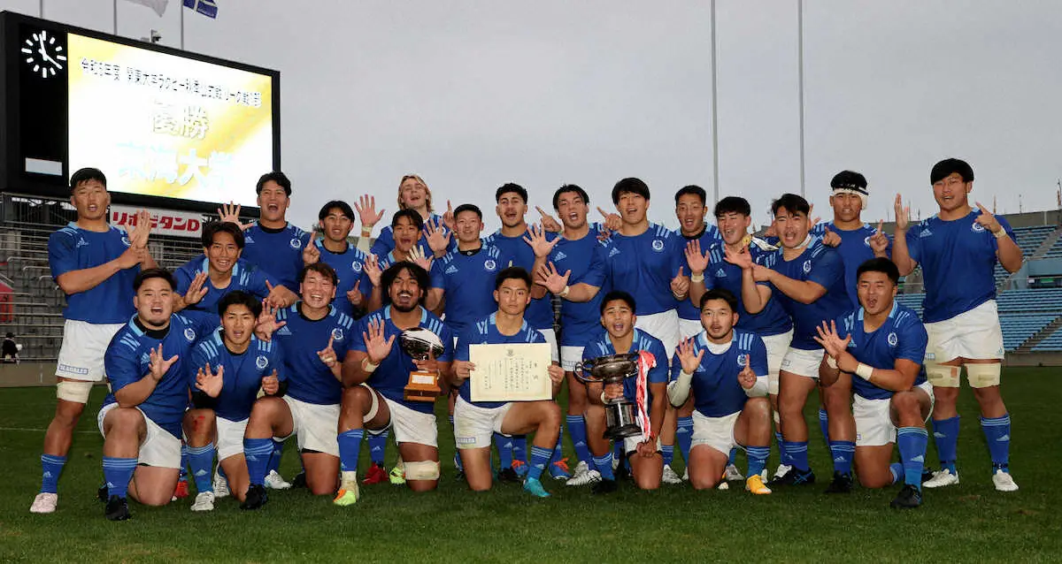 東海大がリーグ戦1部史上初の6連覇を達成した。最終節で2位の流通経大との全勝対決を34―31で制し、6年連続13度目の優勝。勝ち点34まで積み上げ、同28の流通経大を振り切った。全日程が終了し、2位以下は2位・流通経大、3位・法大、4位・大東大、5位・東洋大、6位・日大、7位・立正大、8位・拓殖大で確定。上位3チームに全国大学選手権の出場権が与えられ、東海大は来月23日の準々決勝から登場する。