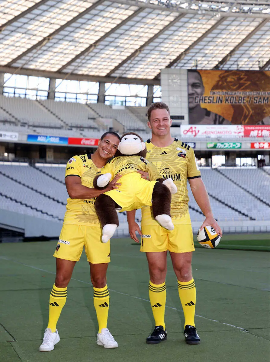 ラグビーリーグワンの東京SGに新加入した“世界一コンビ”が共闘を誓った。W杯フランス大会で優勝した南アフリカ代表のWTBチェスリン・コルビ(30)、準優勝だったニュージーランド代表で主将のFWサム・ケイン(31)が28日、東京・味の素スタジアムで入団会見に臨んだ。来月10日の開幕節・東京ベイ戦(秩父宮)に向け、きょう29日から練習に合流する。