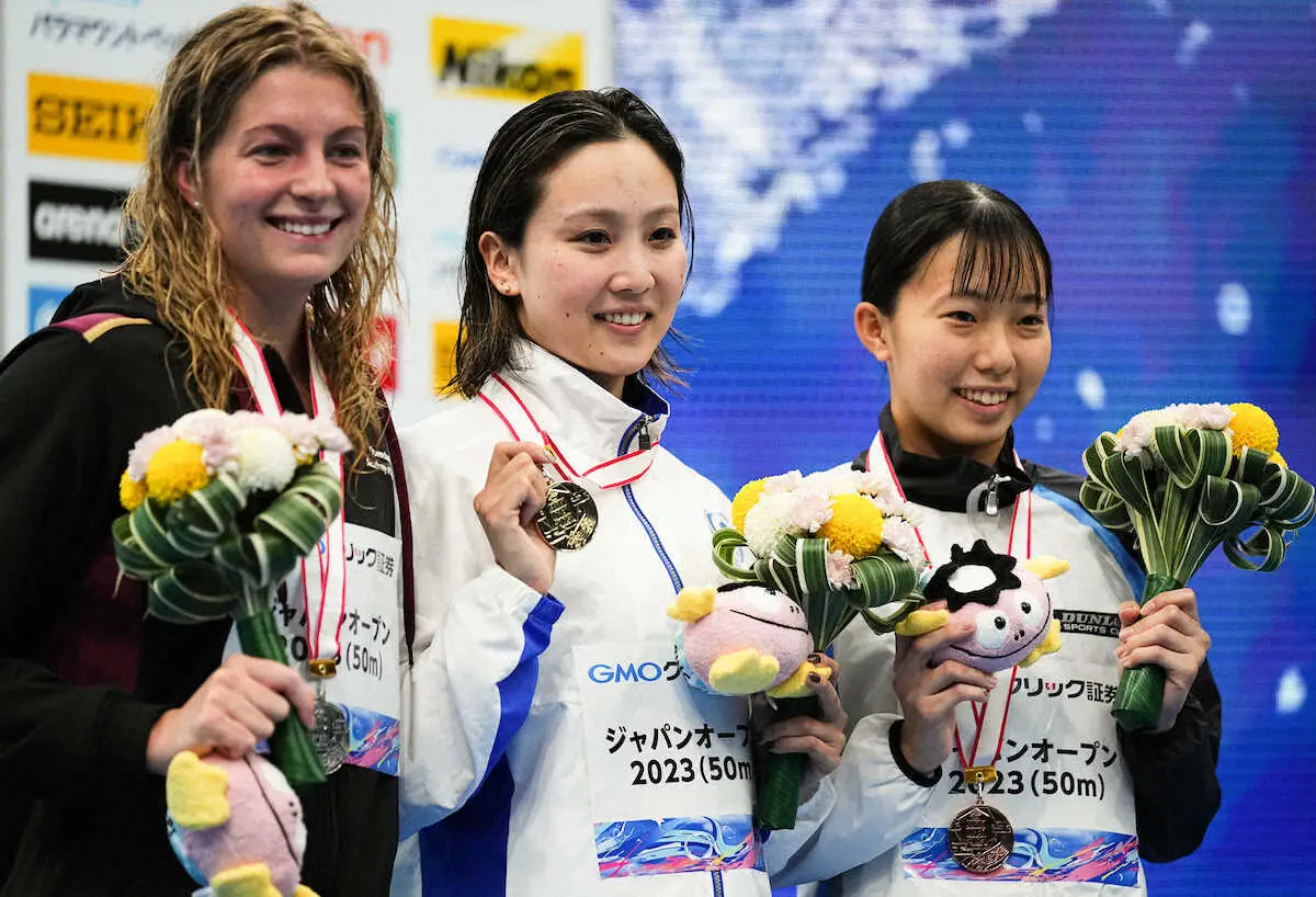 男子200メートル平泳ぎは渡辺一平(26=トヨタ自動車)が2分7秒70で制し、花車優(23=イトマン東京)が2分9秒31で2位。女子200メートル背泳ぎは成田実生(16=金町SC)が2分10秒84で頂点に立ち、個人メドレー2種目との3冠を達成した。