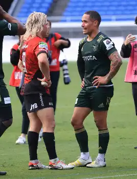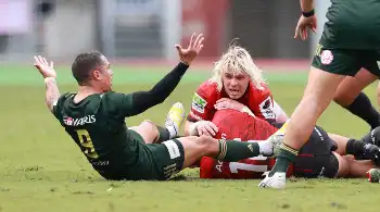 <横浜・トヨタ>前半、デクラーク(上)にタックルするスミス(撮影・篠原岳夫) Photo by スポニチ デクラークで横浜初白星 W杯決勝から49日後、至高のSH対決にレギュラーS… ギャラリーで見る この記事のフォト 2023年12月17日の画像一覧 もっと見る 2023年12月17日の画像をもっと見る