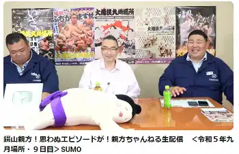 錣山親方は一緒に出演した山科親方と主治医が一緒という話や、スマートフォンにしたが「アプリでもう心が折れている。アプリの意味が分かってない」などのエピソードを交えながらトークをし、最後に久しぶりの感想を聞かれると「楽しいです」と答え、また出演を、と言われると「いくらでも」と語っていた。