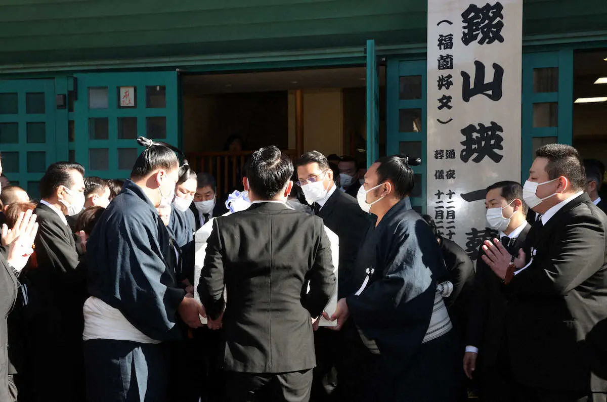 午前11時半頃、弟子で今後錣山部屋を継承する見込みの立田川親方(元小結・豊真将)らが棺を担ぎ、部屋頭の小結・阿炎は涙を拭いながら後ろで見守った。出棺の際には、かつての弟子たちから「親父、ありがとう!」と声が上がった。