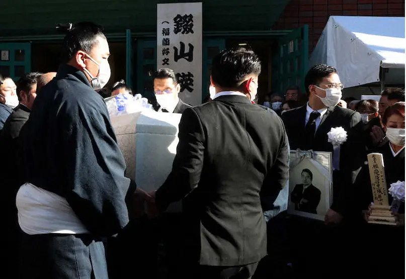 出棺の際には、弟子で今後部屋を継承する見込みの立田川親方(元小結・豊真将)らが棺を運び、部屋頭の小結・阿炎は少し後ろで見守りながら号泣。駆けつけた大勢の関係者やファンから「寺尾~!ありがとう!」と別れを惜しむ声が響き渡った。