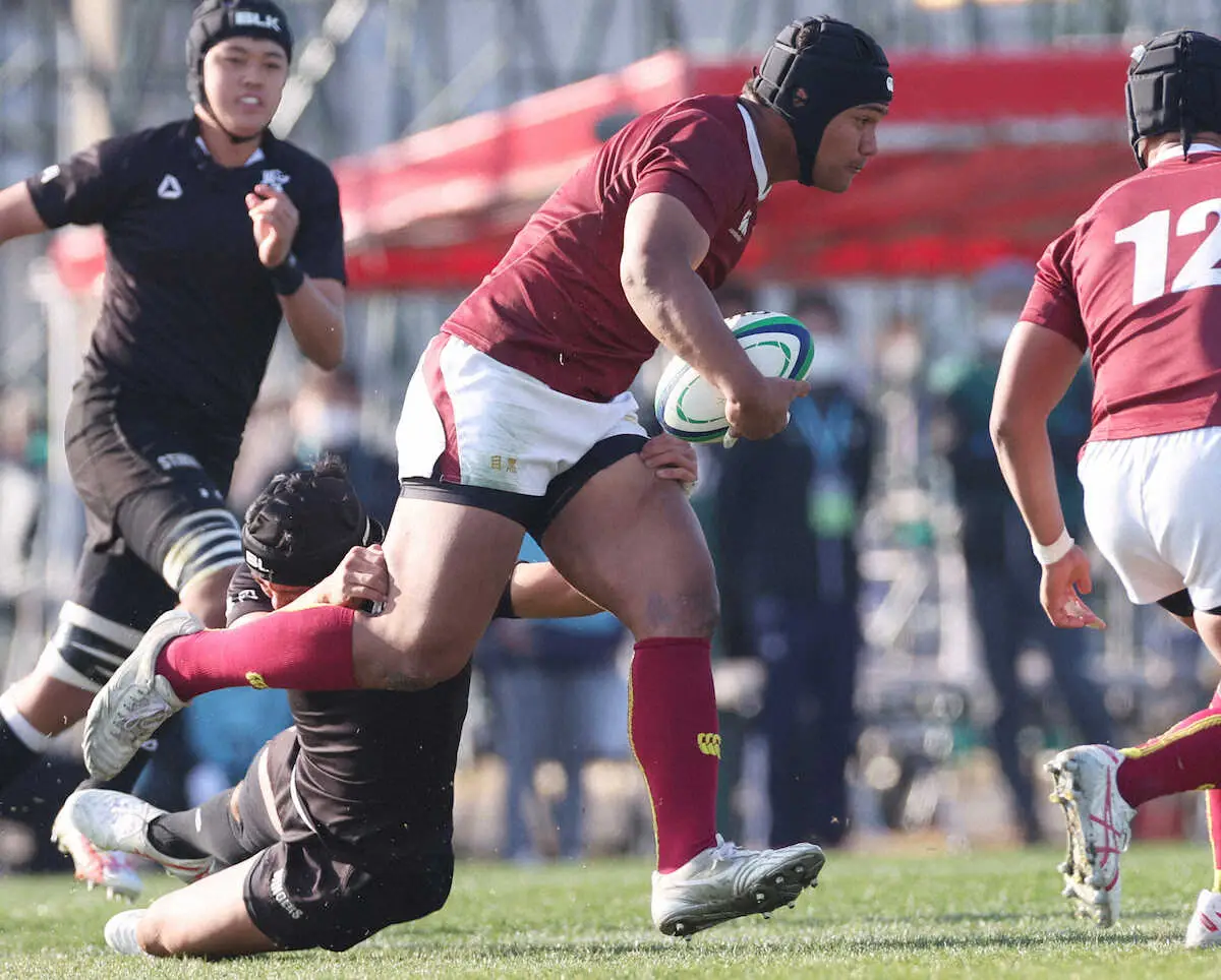 聖地・花園で圧倒的な突進力を見せつけた。トンガからの留学生で1年生、NO・8ロケティ・ブルースネオルが立ち上がりの連続トライでチームを勢いづけた。前半3分に敵陣22メートルライン付近のラックからロケティがサイドアタック。182センチ、110キロと迫力満点の体に加え、巧みなステップと強烈なハンドオフで相手タックルを吹き飛ばし、インゴールに飛び込んだ。前半9分にも敵陣22メートルライン付近のスクラムからのサイドアタックで中央にトライを決めた。