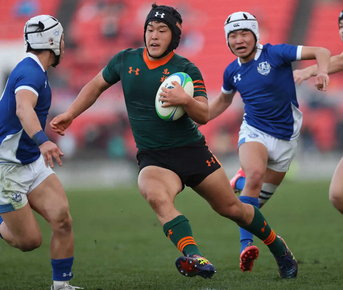 連覇を目指す東福岡は隙がない貫禄のスタートを切った。前回大会優勝でも光った守備が充実。後半に8人選手を入れ替えたが、強度は落ちず最後まで相手の攻撃を割らせなかった。高校日本代表候補でNo・8高比良主将は「体を当てることを1試合やり続けられたことはよかった」と初戦の収穫に挙げた。