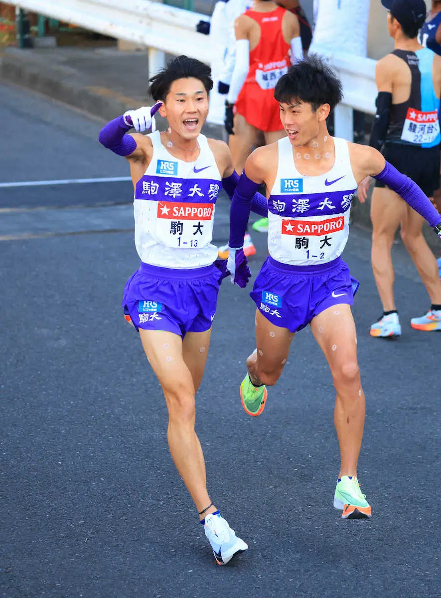 【箱根駅伝】駒大・鈴木芽吹 給水受け笑顔の快走「頼もしい」「すげー」 4年生の絆に感動の声も