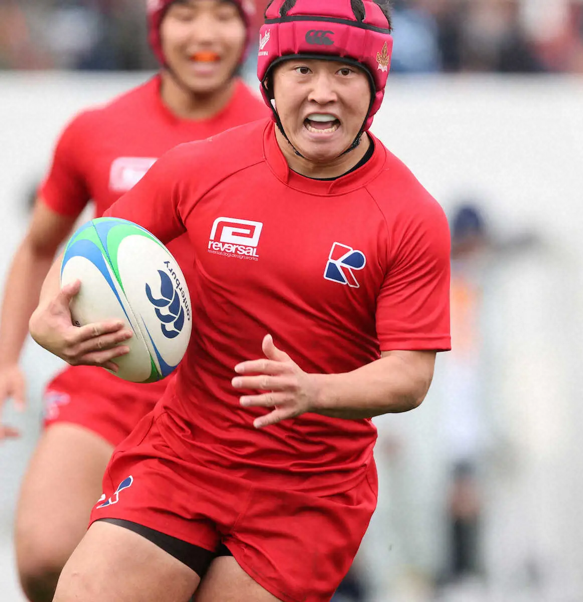 前半ロスタイムに1年生からビッグプレーが飛び出した。相手ボールを奪うと、大阪桐蔭のディフェンスのスキをロック阿部虎生(1年)が突き、敵陣前まで大きく前進。ラックから右に展開し、最後はFB丸岡大地斗(3年)がトライに成功し、逆転。前半を13―7で折り返した。