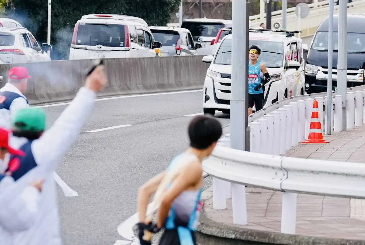 8→9区の戸塚中継所で、山梨学院大が今大会初の繰り上げスタートとなり、タスキがつながらなかった。8区の新本駿(3年)が約9秒、間に合わなかった。