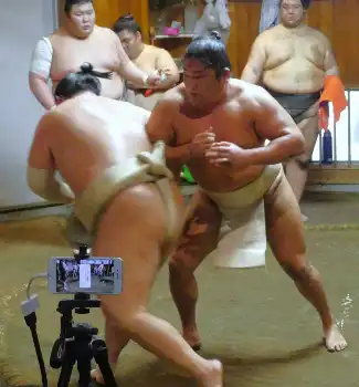 【伊勢ケ浜一門連合稽古】研修生・オチルサイハンが幕下力士を圧倒 旭丘高の先輩・旭海雄と“再会”