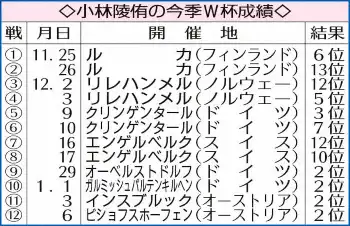▽ジャンプ週間 年末年始にドイツ、オーストリアの4つのジャンプ台を計8日間で回る伝統の大会。現在のW杯の原形とされる。52~53年シーズンに始まり、今季は72回目。総合優勝は4試合計8本のジャンプの合計得点で争われる。グランドスラム(4戦全勝)は01~02年のハンナバルト(ドイツ)、17~18年のストッフ(ポーランド)、18~19年の小林陵の3例で、4戦勝利なしでの総合優勝は今季の小林陵が9例目だった。総合優勝の賞金は10万スイスフラン(約1700万円)。
