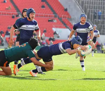 チーム唯一の価値あるトライに「実感が湧かない。3年間、仲間と本当につらい練習をしてきて、最後に報われた」。1年生の6月に左膝前十字じん帯を断裂し、約10カ月離脱。空いた時間を使い、海外に挑戦する将来を思い描いて英語を勉強するなど前向きに乗り越えた。「この大舞台でラグビーをできたことが本当に幸せ」と喜びをかみしめた。