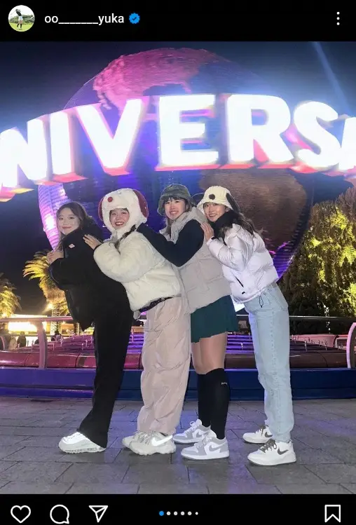 「今年もみんなでユニバいってきました 寒いのもぶっ飛んでたのしかったです みんなありがとう 今シーズンも頑張ろう」とつづり、同学年の後藤未有(23=大東建託)、上野菜々子(23=コーナン)、吉田優利(23=エプソン)とのユニバーサル・スタジオ・ジャパン(USJ)での4ショットをアップした。