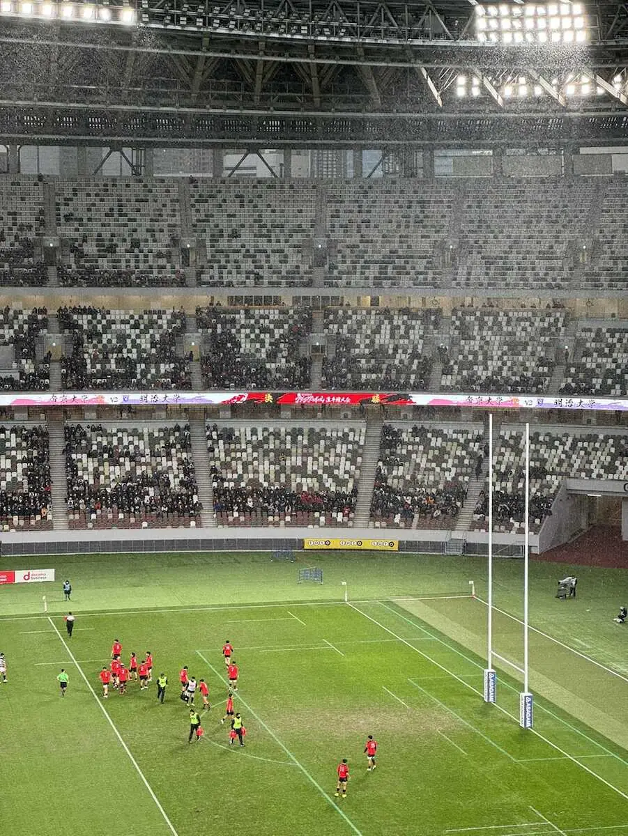 <帝京大・明大>雪が降る国立。前半、落雷の可能性があるため試合が一時中断(撮影・篠原岳夫) Photo by スポニチ 【ラグビー大学選手権決勝】前半途中に落雷で試合が一時中断 国立試合前… ギャラリーで見る この記事のフォト 2024年01月13日の画像一覧 もっと見る 2024年01月13日の画像をもっと見る