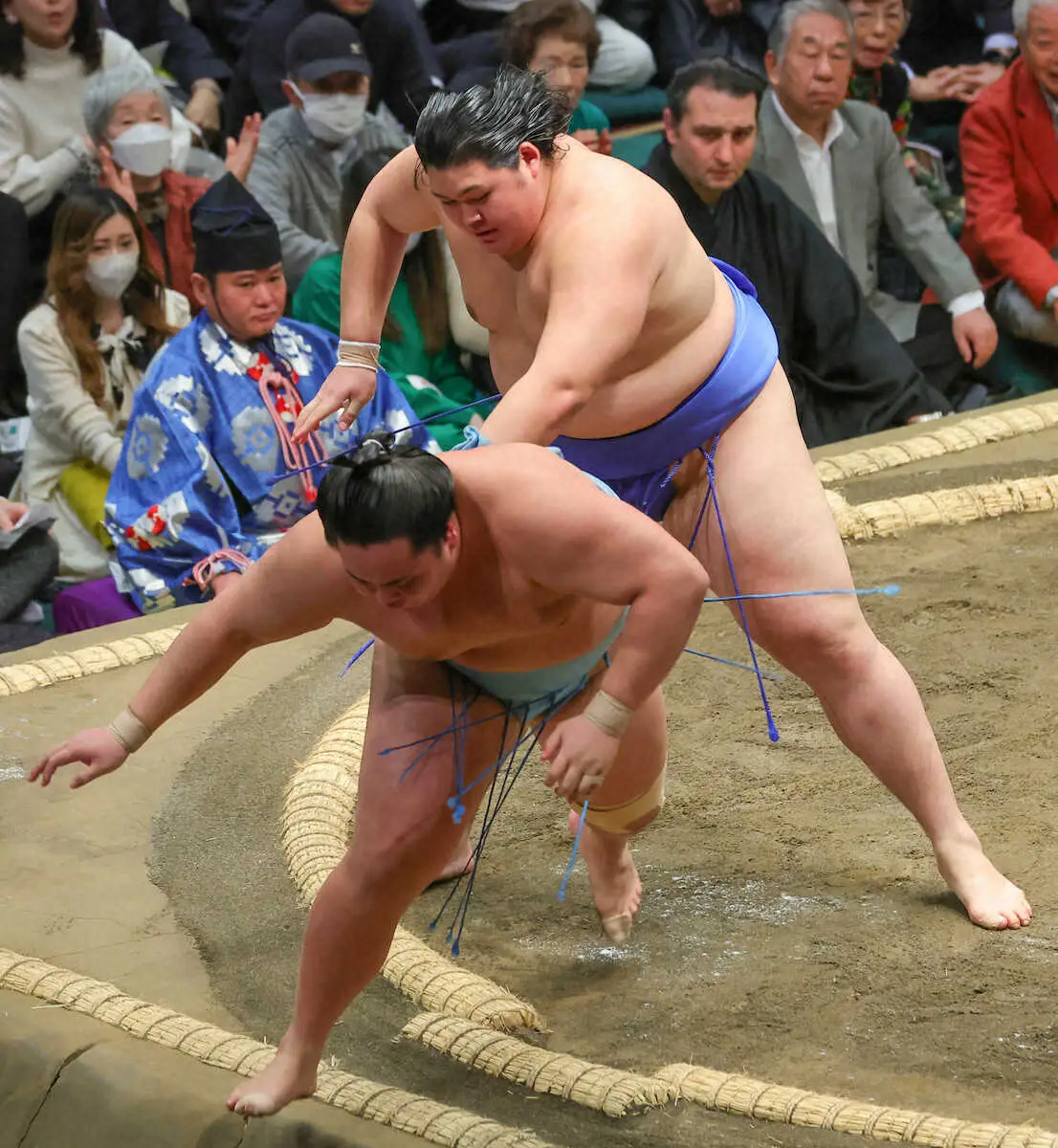 昭和以降3位タイの初土俵から所要4場所でスピード新入幕を果たした大の里(23=二所ノ関部屋)が琴勝峰(24=佐渡ケ嶽部屋)を押し倒しで破って初日から2連勝とした。