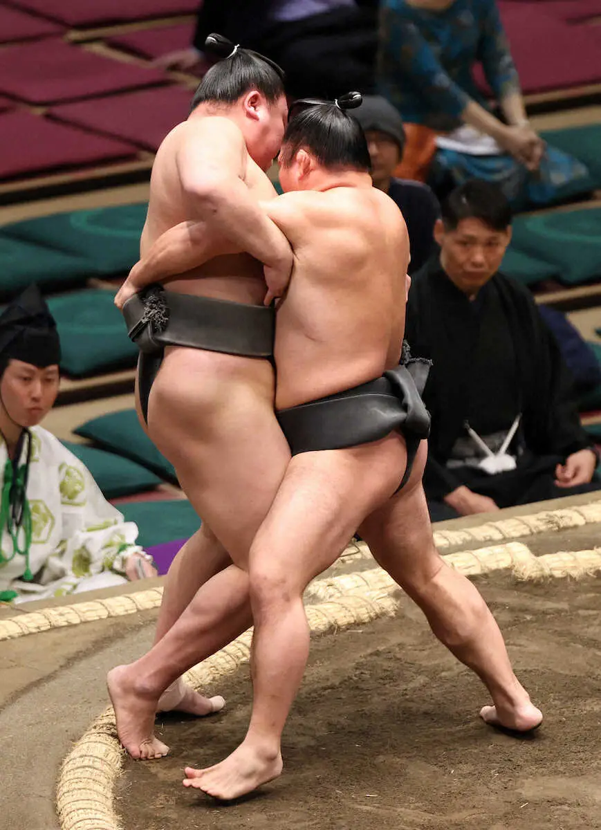 相手の動きを見る立ち合いから左を深く差し込んだ。右は前褌をしっかりつかみ、左半身になりながら前へ出た。「阪神大震災もそうだけど、元旦に起きた(能登半島)地震もそう。被災された方も含めて少しでも励みになれば。(自身の存在を)知ってもらって、力にしてもらえればいい」と思いを口にした。