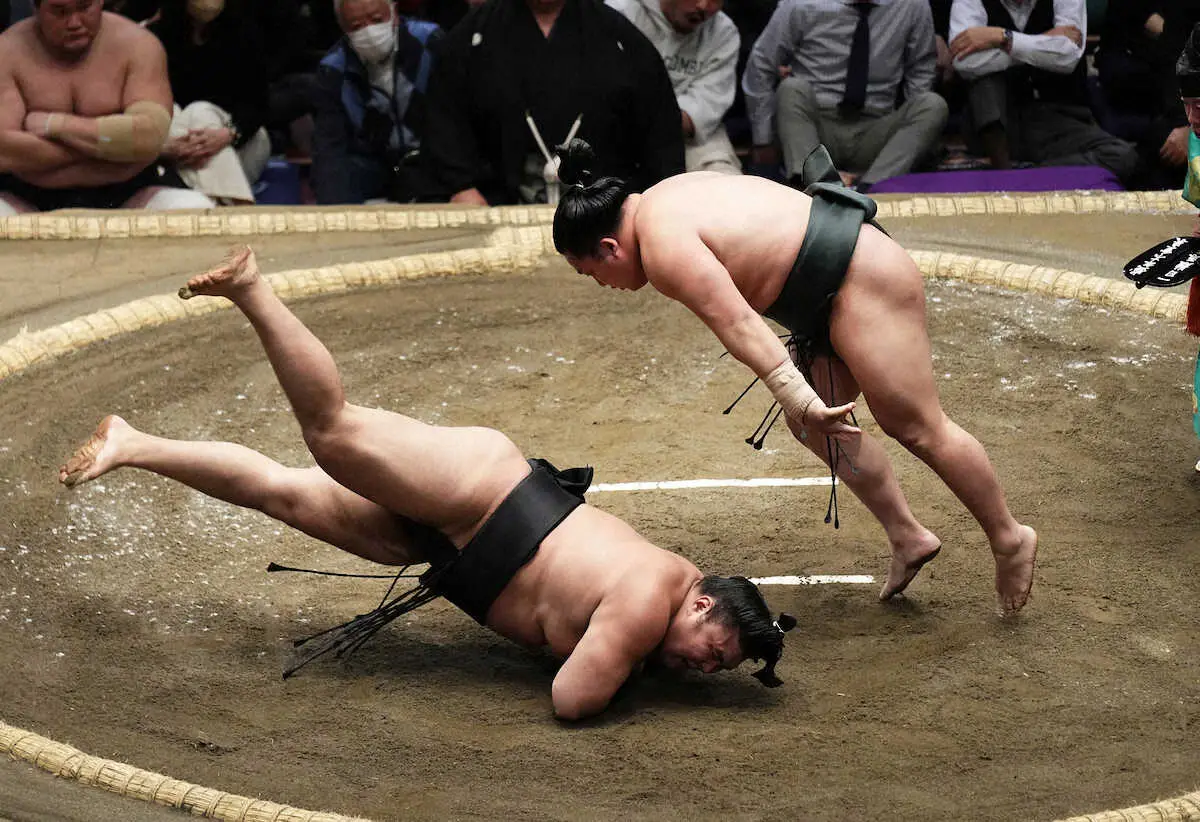 綱獲りの霧島が翠富士の肩透かしに沈み、初黒星を喫した。